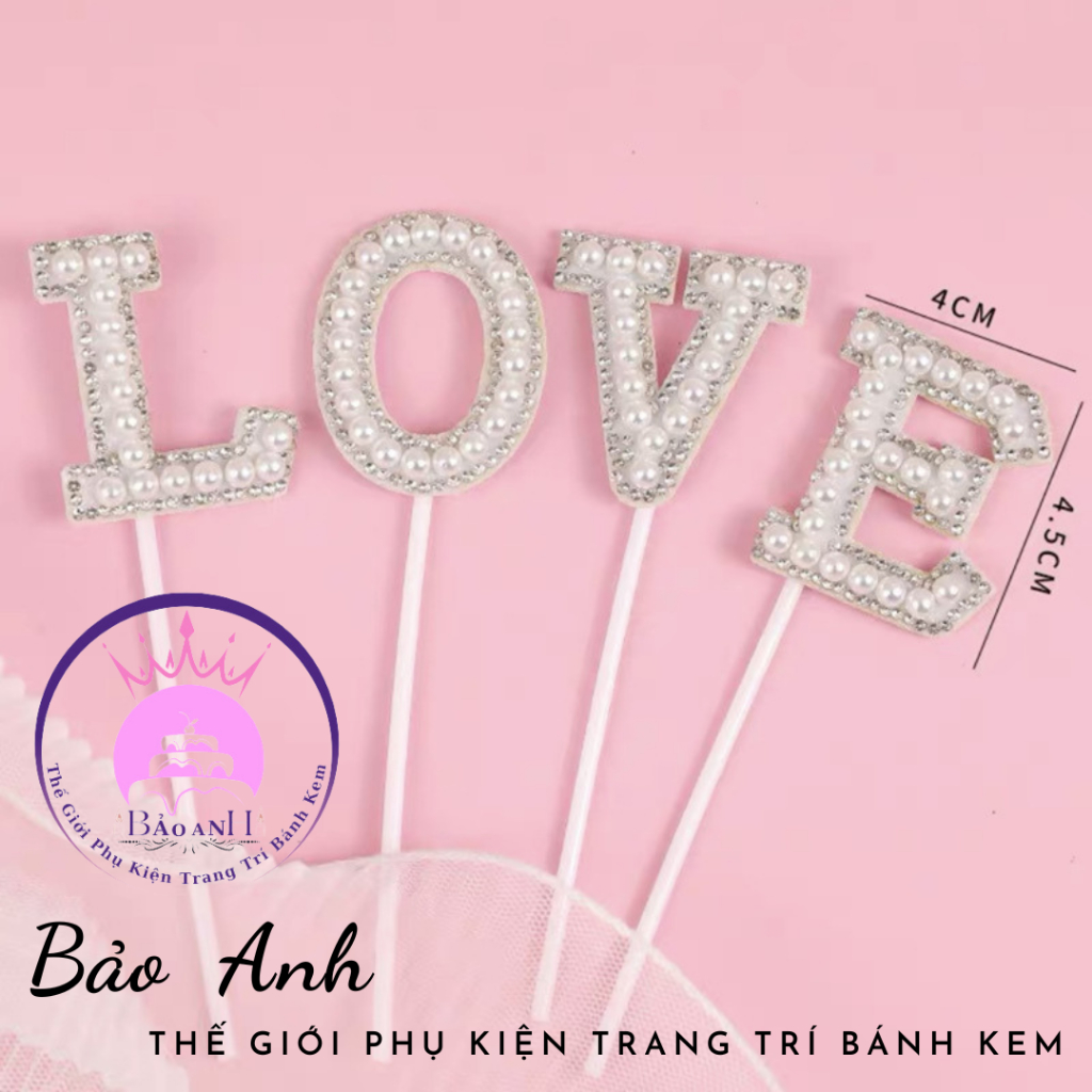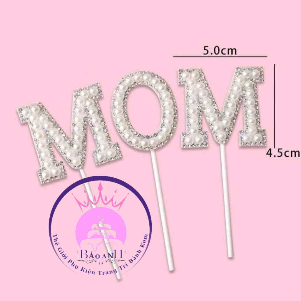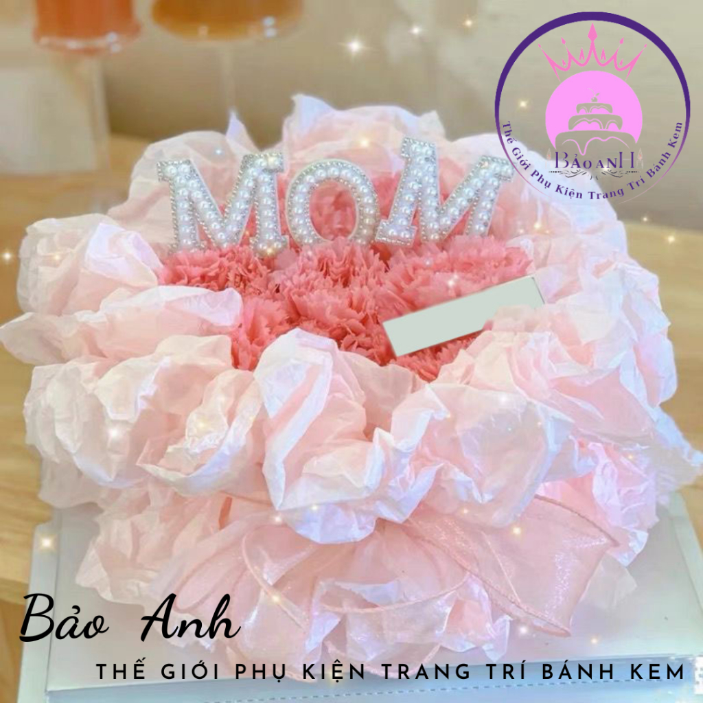 Chữ Love Mom Nơ Ngọc trang trí bánh kem, trang trí sinh nhật