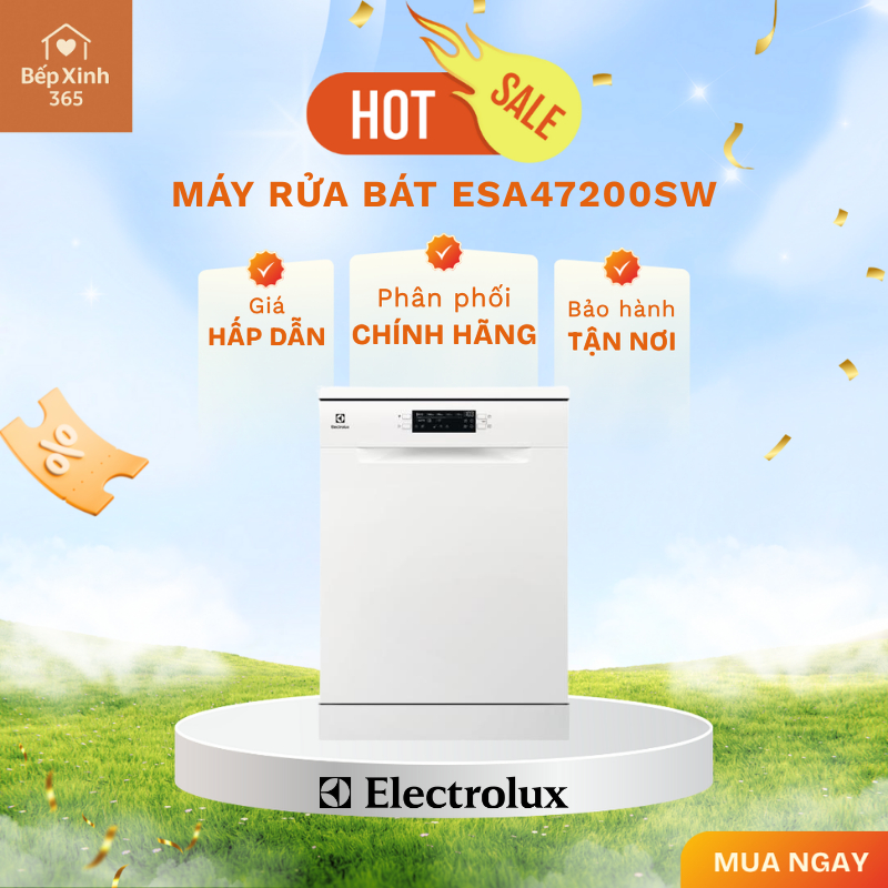Máy Rửa Bát Electrolux ESA47200SW Lọc Sạch Dầu Mỡ, Vận Hành Êm Ái, Bảo Hành Chính Hãng
