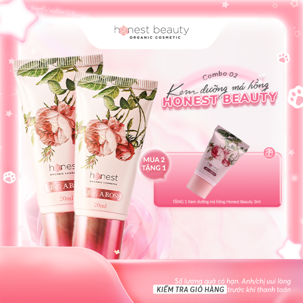 COMBO 2 Kem Dưỡng Má Hồng Honest Beauty Dưỡng Hồng Hữu Cơ Tự Nhiên 24H Không Make Up Honest Organic Cosmetic Like A Rose