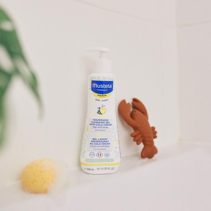 Combo Gel Tắm Gội Cho Bé Da Khô Nourishing Cleansing Gel with Cold Cream Mustela 300ml + Kem dưỡng WITH COLD CREAM 3ML