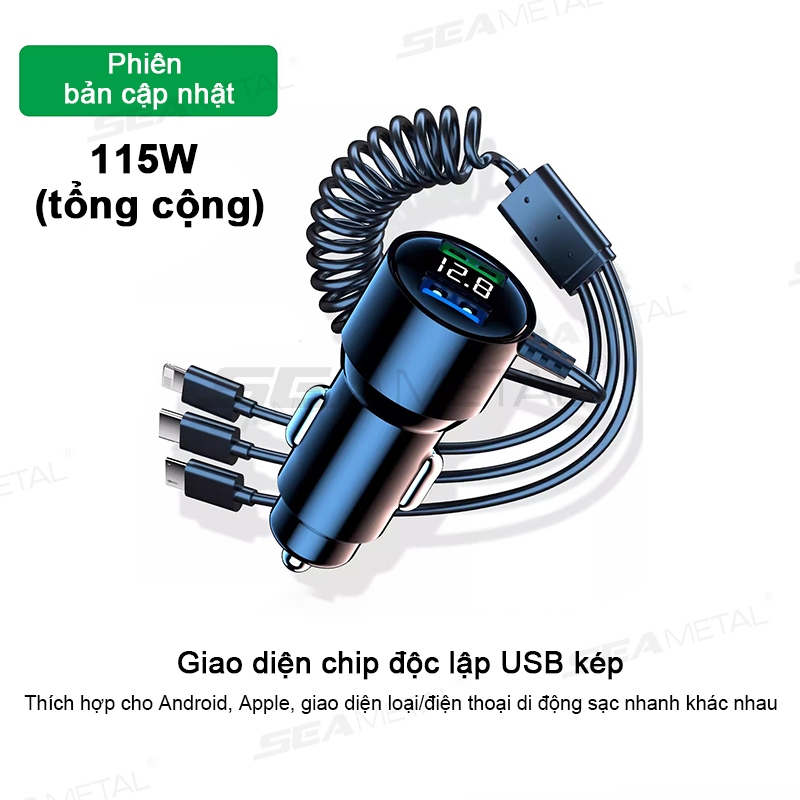Bộ sạc ô tô SEAMETAL 230W với cáp sạc nhanh 3 trong 1 PD Type C QC3.0 USB C Bộ sạc điện thoại ô tô cho Samsung Iphone