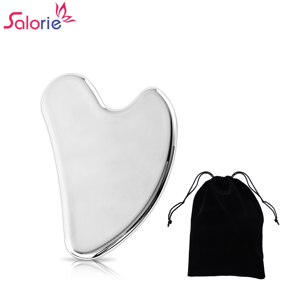 Dụng cụ cạo guasha SALORIE inox giúp nâng cơ mặt và làm săn chắc da chống lão hóa kèm túi đựng