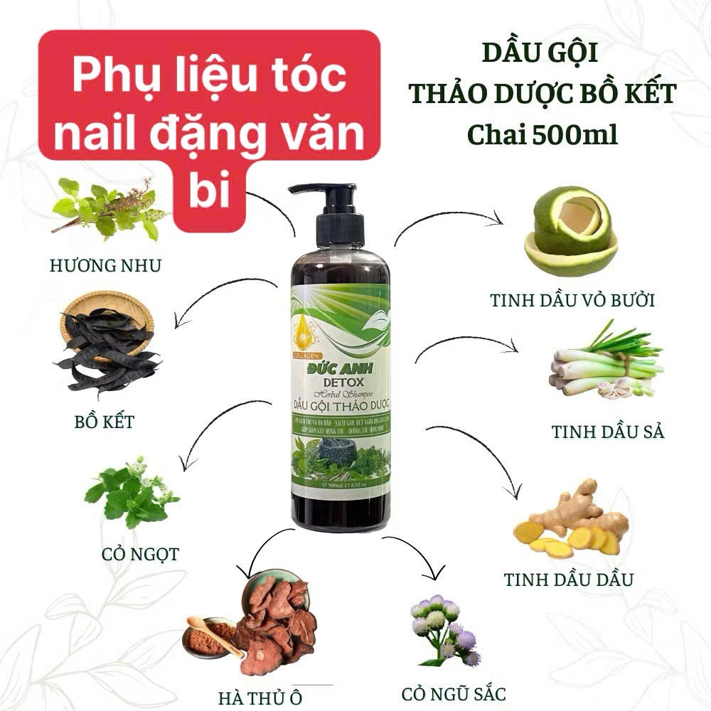Dầu gội bồ kết ĐỨC ANH 500ml, GỘI THẢO DƯỢC - Nuôi dưỡng tóc, sạch gàu, hết ngứa, tóc óng ả mượt mà