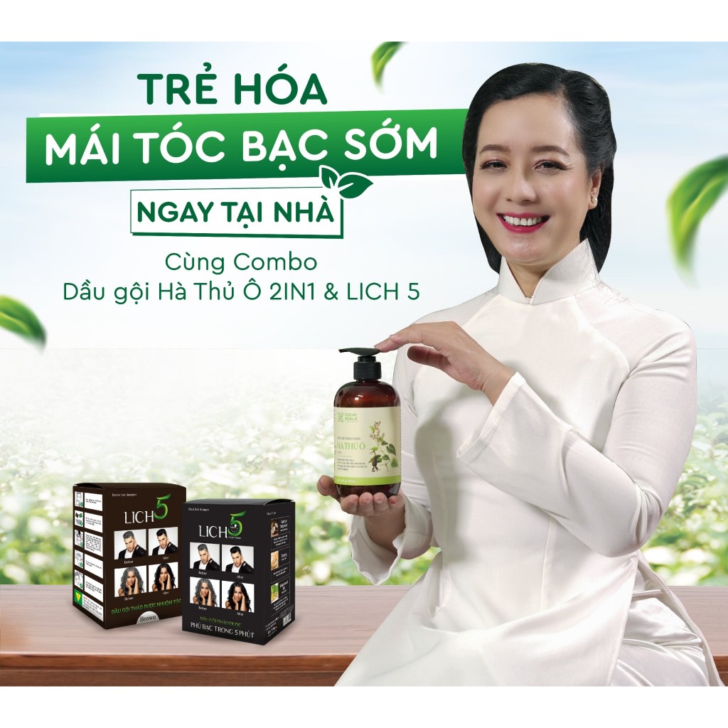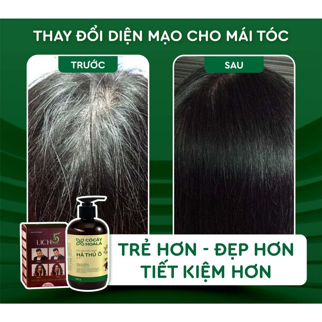 Bộ sản phẩm phủ bạc, kích thích mọc tóc Lich5 và Hà Thủ Ô Cỏ cây hoa lá 650gr - Trạm Organic