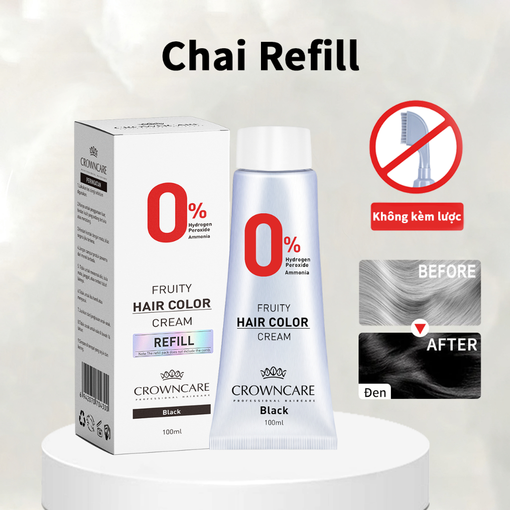 Crowncare Thuốc Nhuộm Tóc Chai Refill, Không Kèm Lược, Thành Phần Tự Nhiên, Che Phủ Tóc Bạc Nhanh Chóng,Thân Thiện Với D