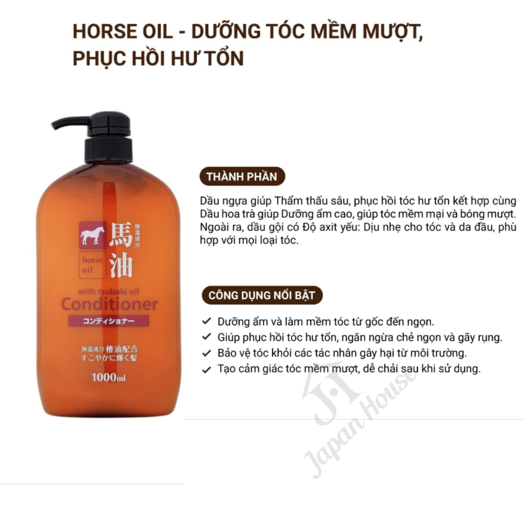 Dầu gội xả mỡ ngựa KUMANO Cosme Station Horse Oil 1000ml Nhật Bản