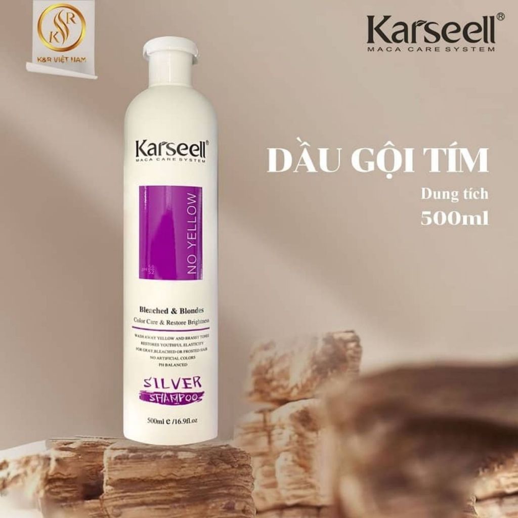Dầu Gội Tím Khử Vàng KARSEELL Silver Shampoo Dầu Gội Khử Vàng, Giữ Màu Cho Tóc Nhuộm Sáng, Tóc Tẩy