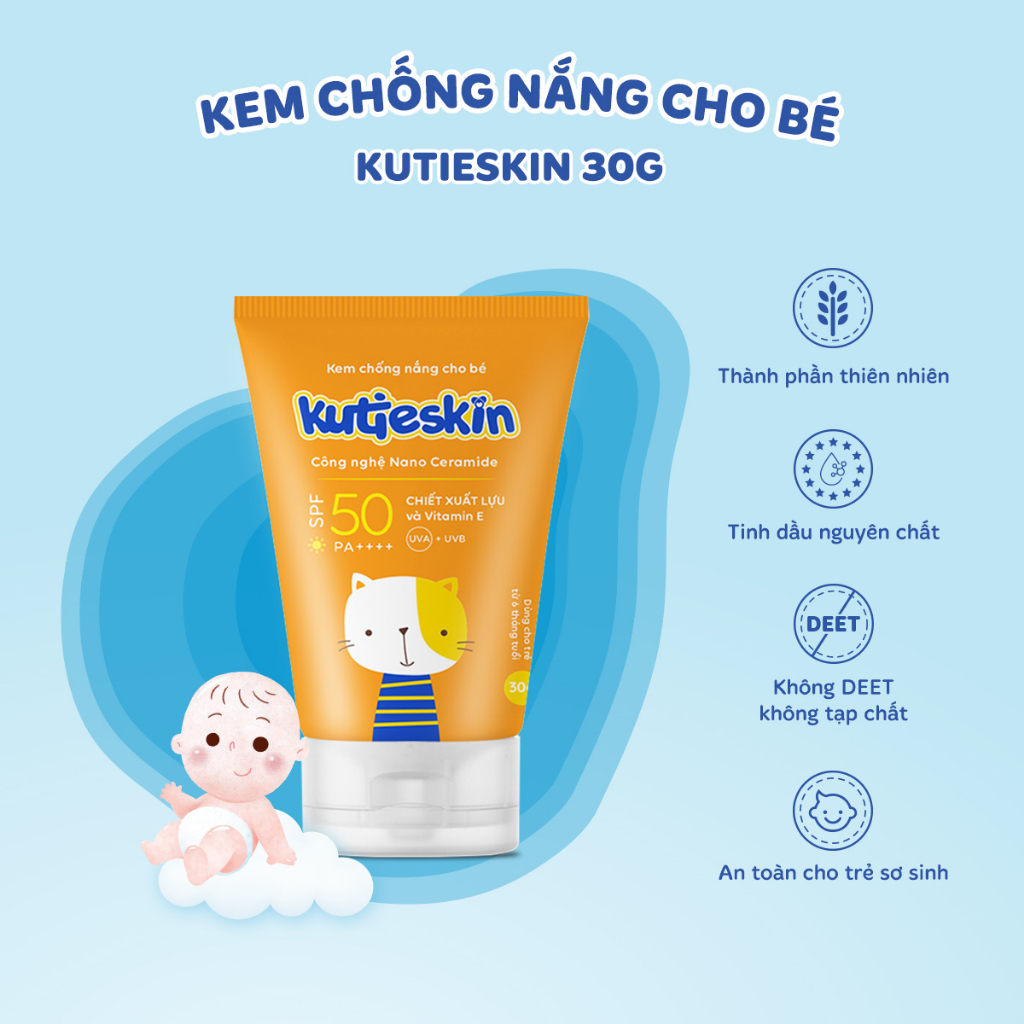 Kem chống nắng Kutieskin chăm sóc, bảo vệ da trẻ em dưới tác hại của tia UV, ánh nắng mặt trời, cho bé từ 6 tháng tuổi