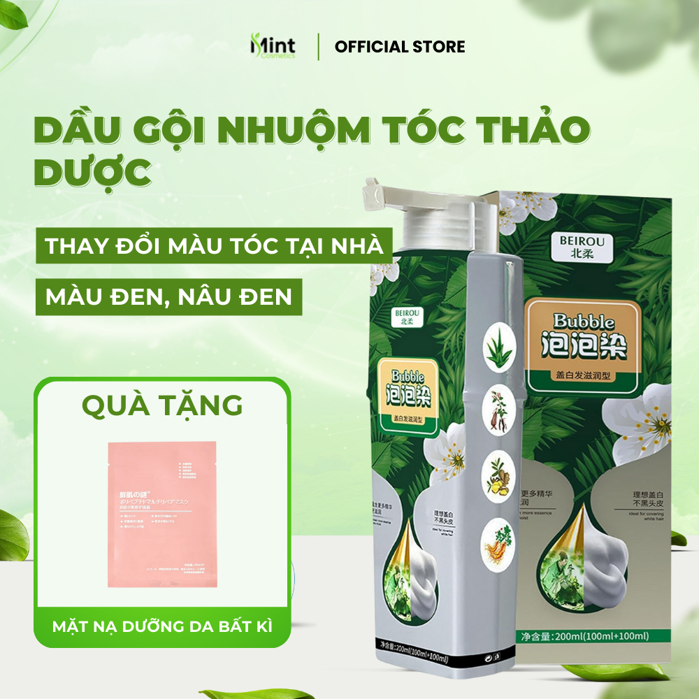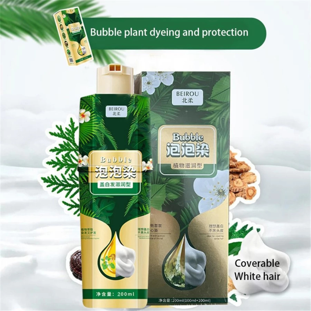Dầu Gội Phủ Bạc Thảo Dược Beirou Bubble - Dầu Gội Nhuộm Đen Tóc, Thay Đổi Màu Tóc Tại Nhà Thảo Dược An Toàn 200ml