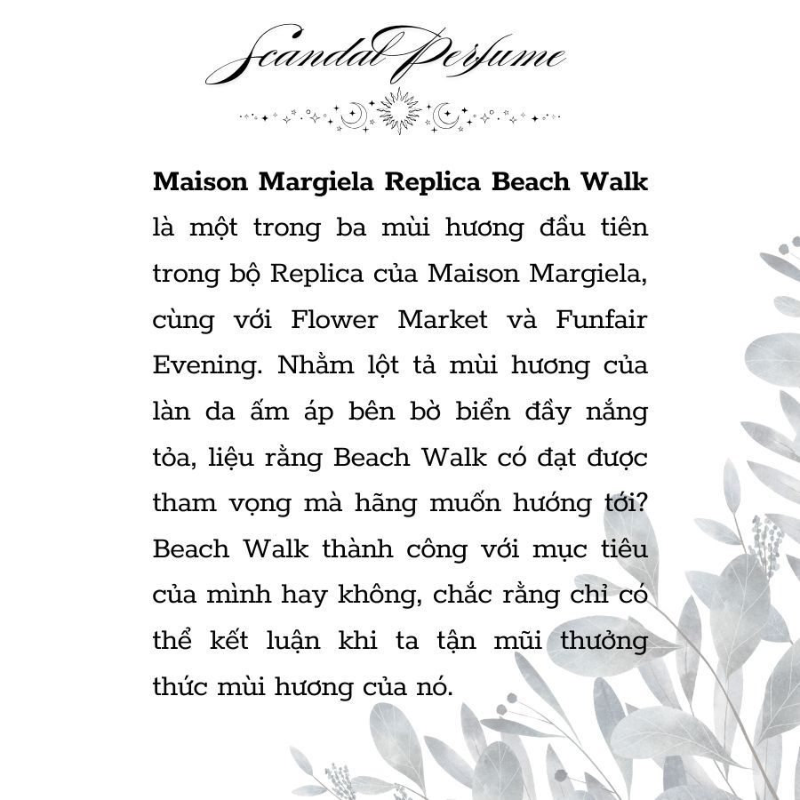 Nước hoa nữ Beach Walk chai 10ml,20ml,30ml dạng xịt - SCANDAL PERFUME lưu hương thơm lôi cuốn, tinh tế