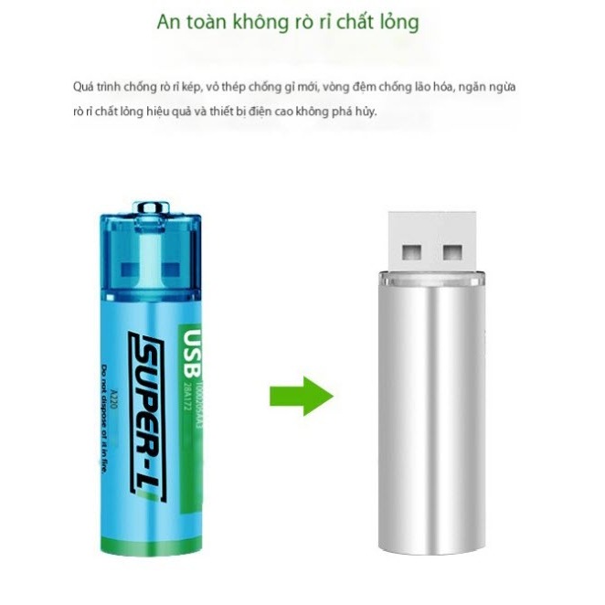 Pin SUPER-L AA 1.5V Lithium có thể sạc lại (độ bền lên tới 1000 chu kỳ sạc) sử dụng cho bàn chải điện, đồ chơi...