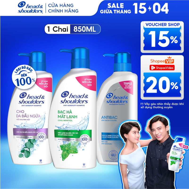 Dầu Gội Sạch Gàu HEAD & SHOULDERS Bạc Hà/ Giảm Ngứa Da Đầu/ Hương Chanh/ Sạch Sâu/ Làm Sạch Vi Khuẩn Chai 850ML