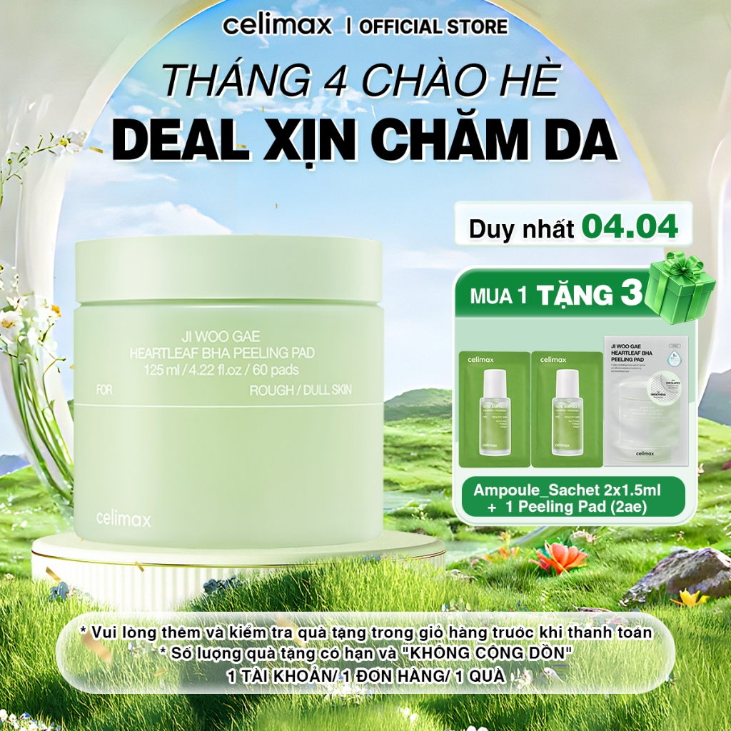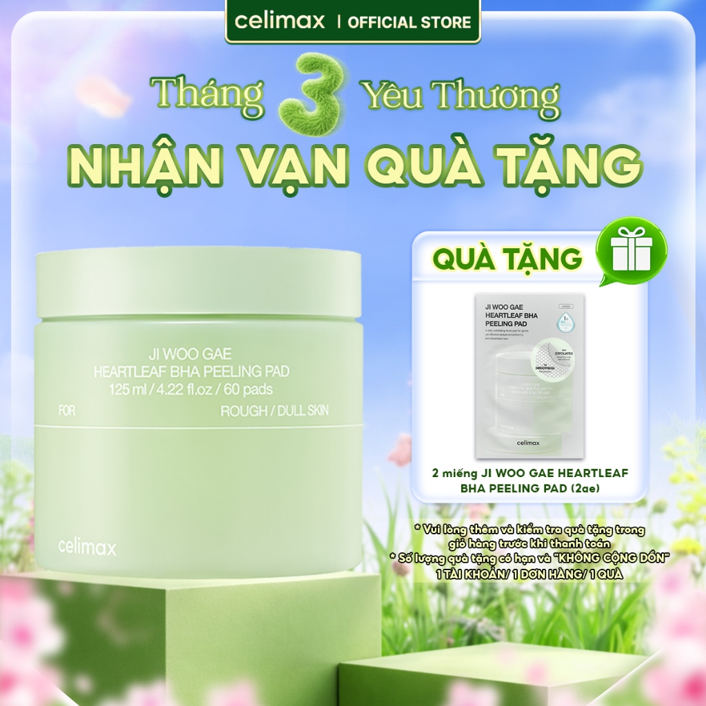 Toner Pad Tẩy Tế Bào Chết Celimax Ji Woo Gae Heartleaf BHA Peeling Pad 125ml/ 60pads