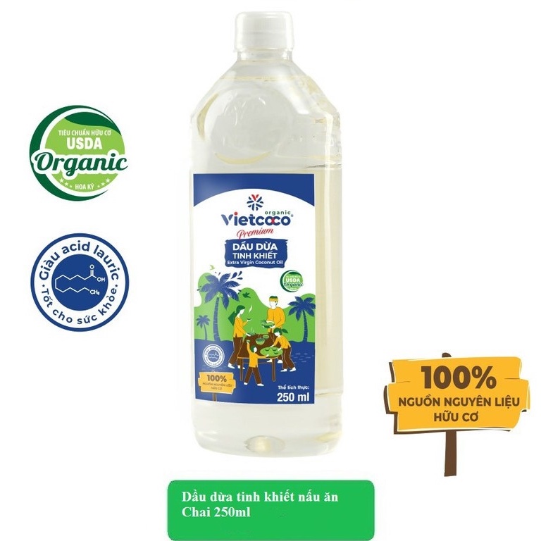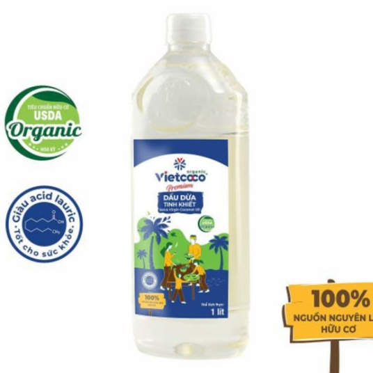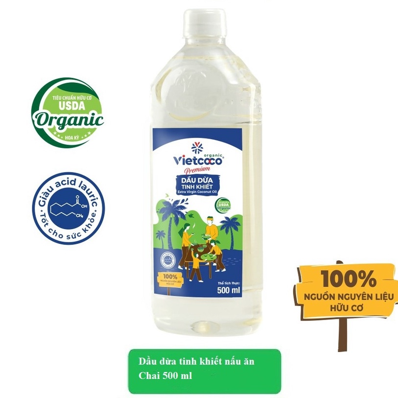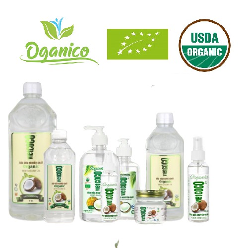 Dầu dừa ép lạnh nguyên chất hữu cơ Vietcoco nấu ăn, dưỡng tóc, dưỡng mày, dưỡng môi vòi nhấn, vòi xịt OGANICO
