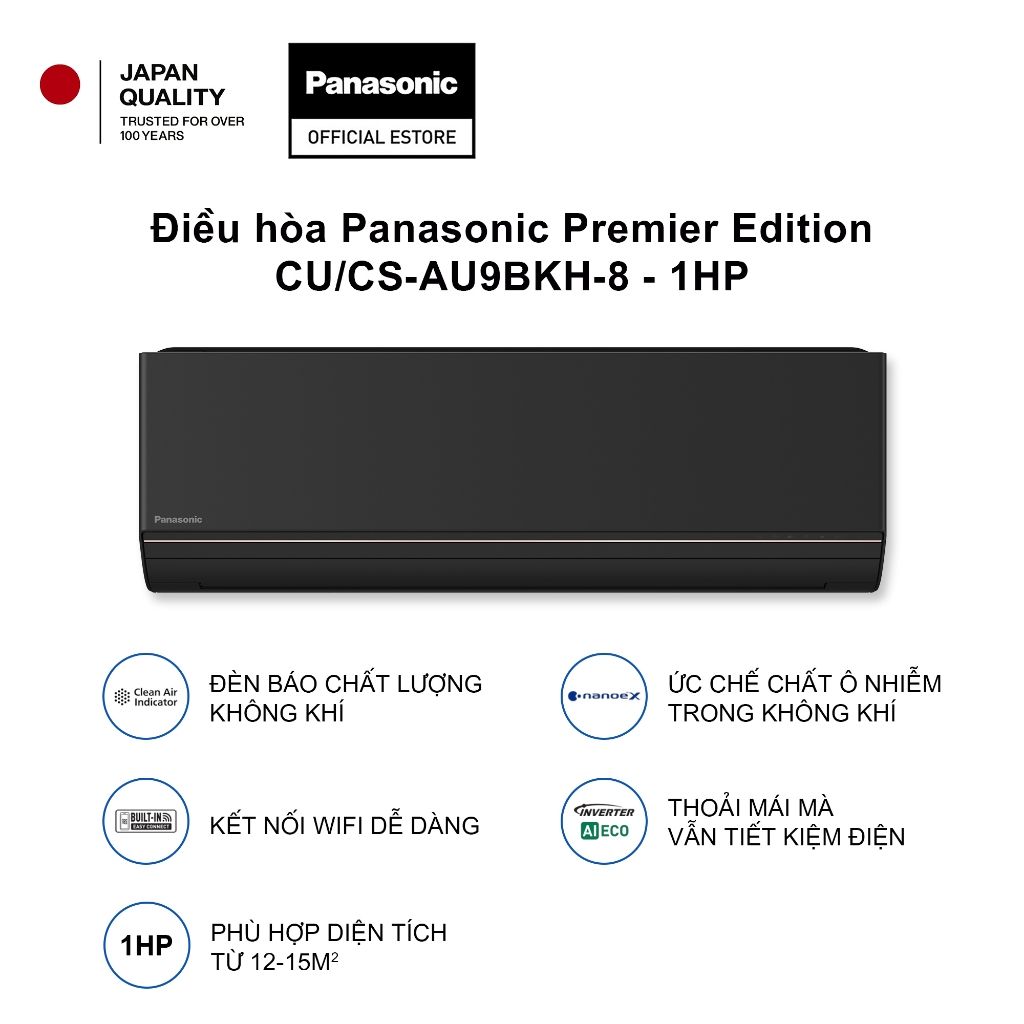 [ELPN2TU GIẢM TỐI ĐA 2TR] Điều hòa Panasonic Premier Edition CU/CS-AU9BKH-8 - 1HP - Một chiều - Wifi
