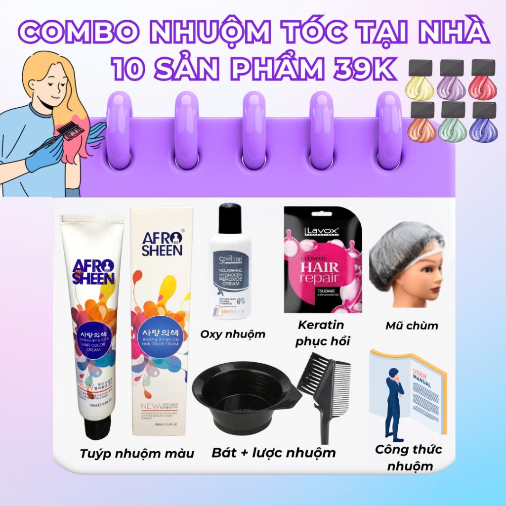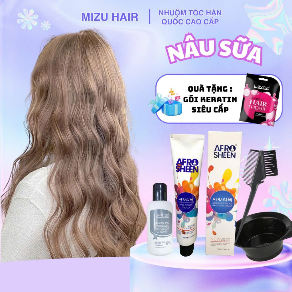 Combo nhuộm tóc thời trang đầy đủ màu nhuộm tại nhà ( tặng kèm bát lược gói ủ) nâu tây nâu vàng nâu lạnh nâu sữa xanh đe
