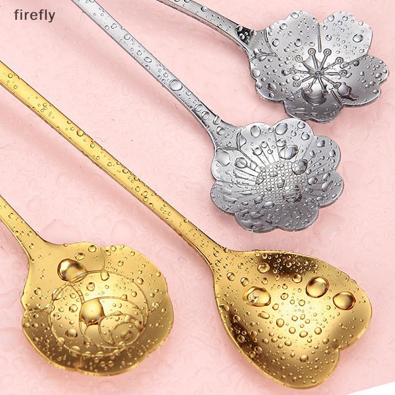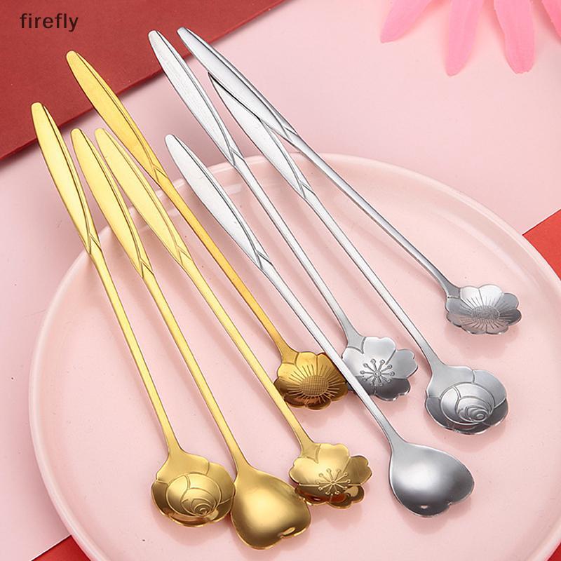 [Firefly] Thìa Cà Phê Thép Không Gỉ Hoa Anh Đào Thìa Hoa Hồng Tay Cầm Dài Sáng Tạo Thìa Hoa Mạ Vàng Phụ Kiện Nhà Bếp [VN]
