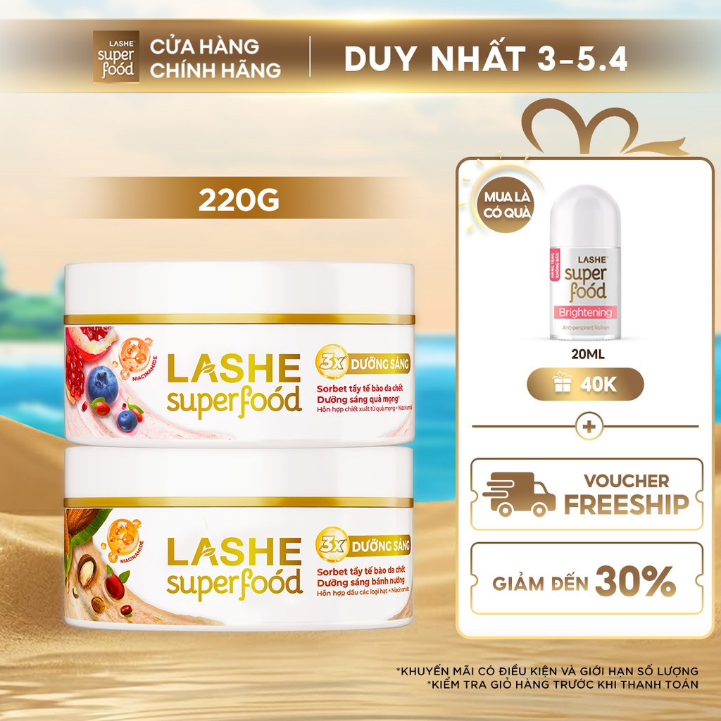 Kem Tuyết Tẩy Tế Bào Chết LASHE SUPERFOOD Dưỡng Sáng Da Hương Quả Mọng / Hương Bánh Nướng 220G