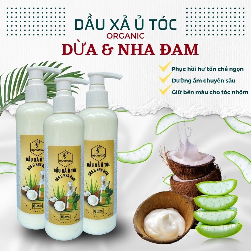 Dầu xả ủ tóc SỮA DỪA, NHA ĐAM Mộc Hương -Bền màu cho tóc nhuộm giúp mềm mượt giảm khô xơ