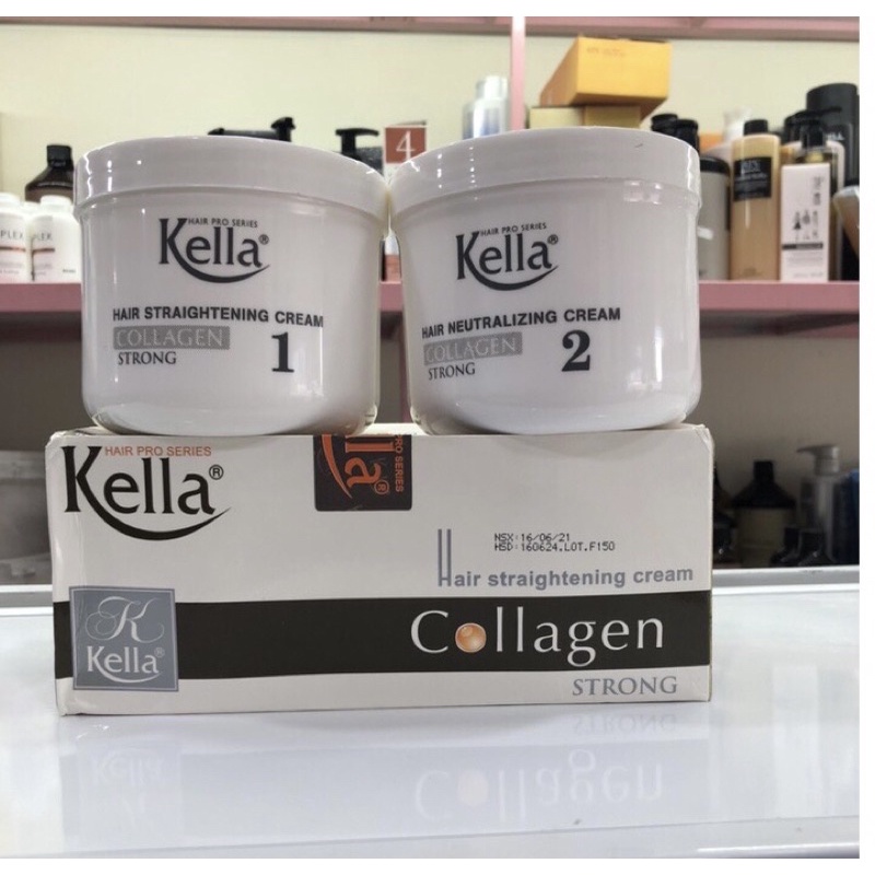 Duỗi Kella Collagen, Thuốc Duỗi Tóc Kella Collagen(màu trắng) 500ml*2