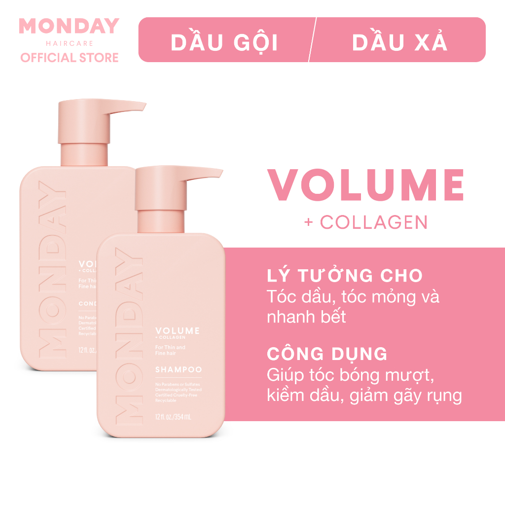 Combo Dầu Gội và Dầu Xả dành cho tóc dầu, mỏng, yếu và dể bị xẹp Monday Volume 354ml