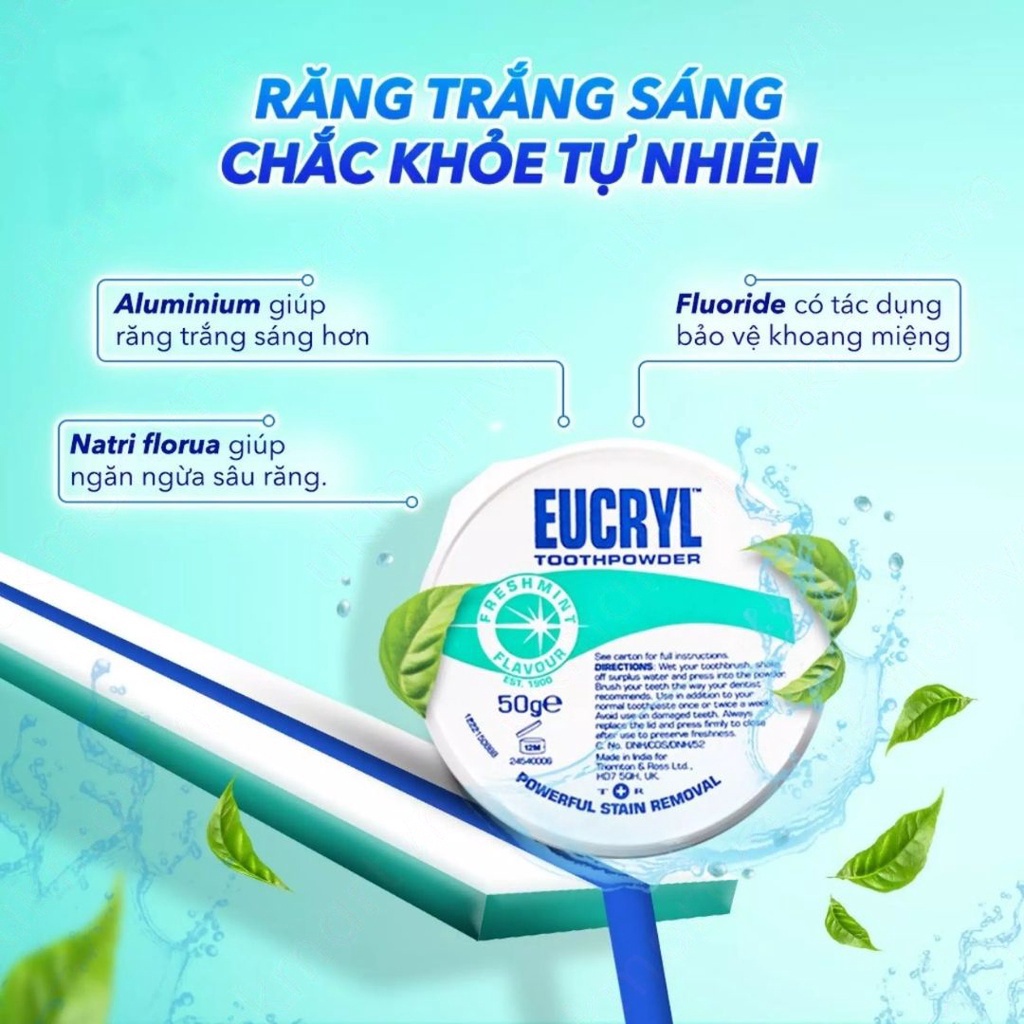 Bột tẩy trắng răng cấp tốc EUCRYL 50g hàng nhập khẩu Anh Quốc