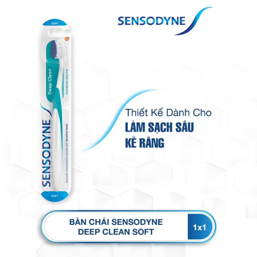 Bàn chải đánh răng SENSODYNE Deep Clean Soft thiết kế với lông bàn chải mềm, nhỏ, giúp làm sạch sâu kẽ răng