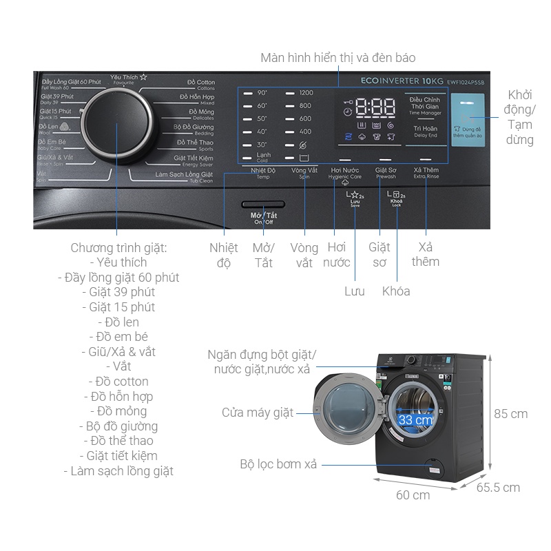 EWF1024D3SC / EWF1024P5SB - Máy Giặt Electrolux Inverter 10 Kg EWF1024D3SC [FREESHIP HCM]