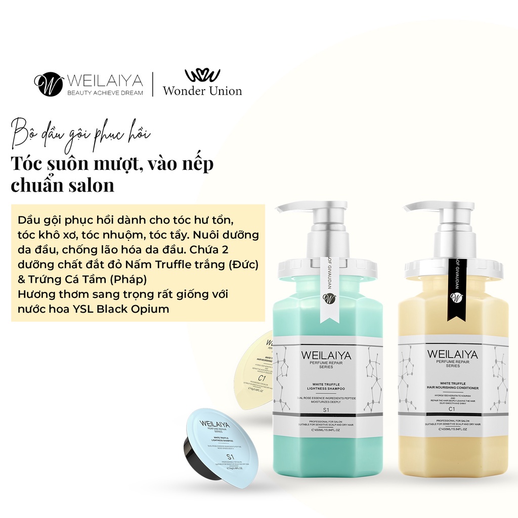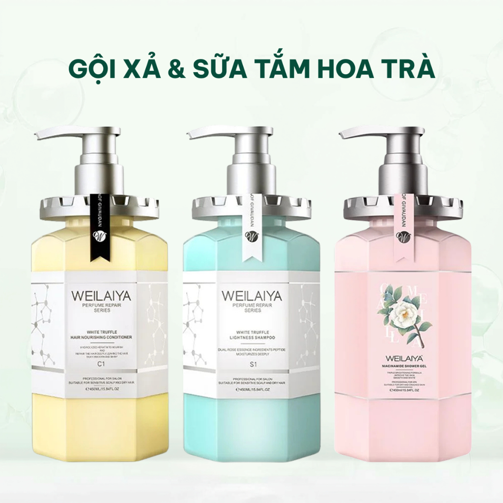 [Siêu tiết kiệm] Bộ sản phẩm chăm sóc tóc và Sữa tắm nước hoa, trắng da toàn thân Weilaiya 450ml