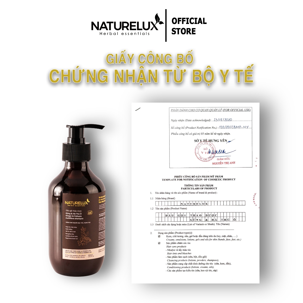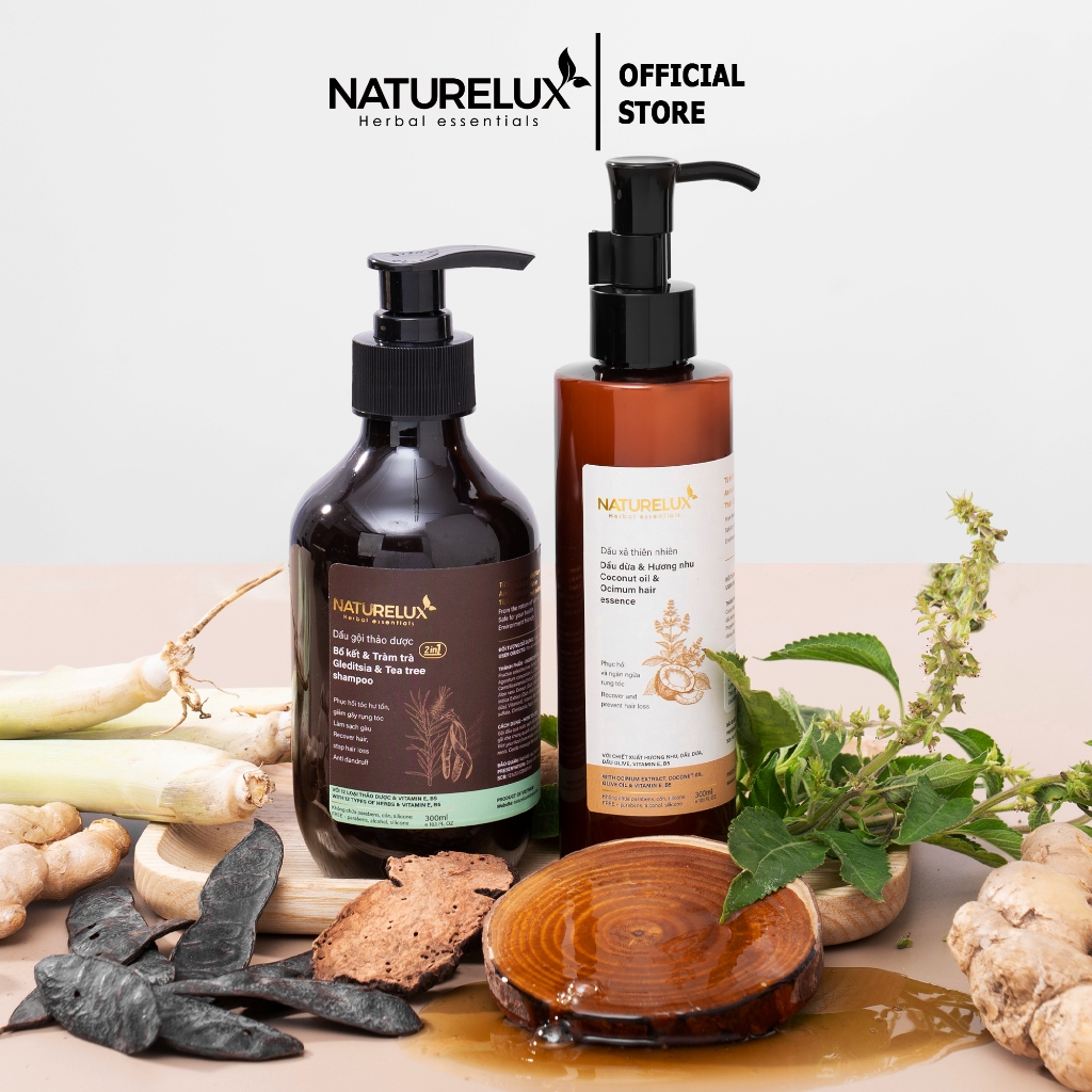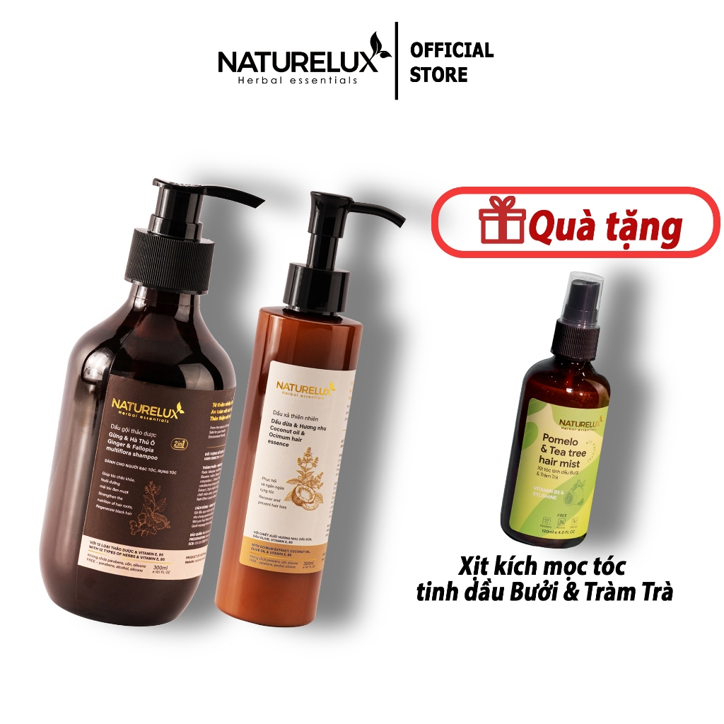 Dầu gội thảo dược Gừng & Hà Thủ Ô giảm rụng tóc, mọc tóc, dưỡng tóc chắc khỏe NATURELUX 500ml