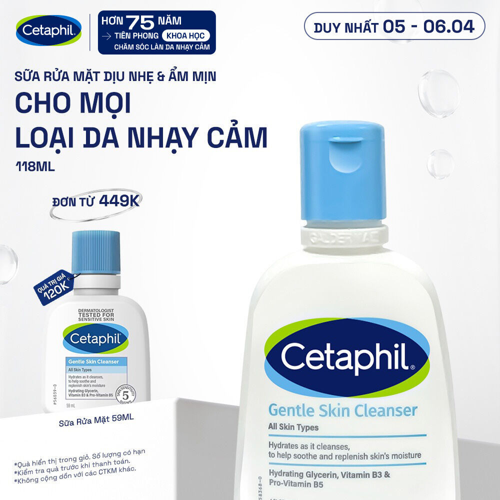 Sữa rửa mặt dịu lành cho da nhạy cảm CETAPHIL GENTLE SKIN CLEANSER 118ML