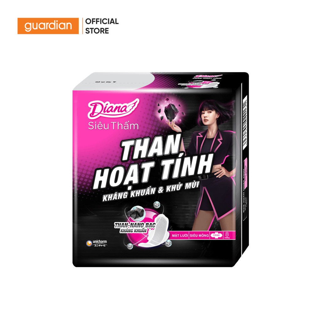 Băng Vệ Sinh Than Hoạt Tính Diana Siêu Thấm Siêu Mỏng 8 Miếng