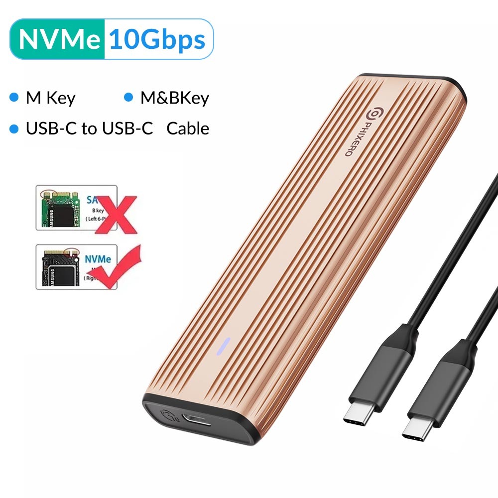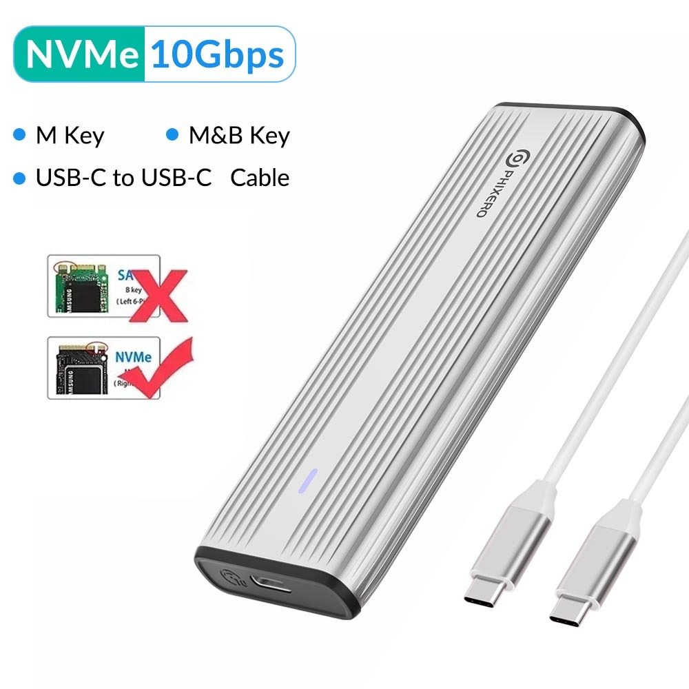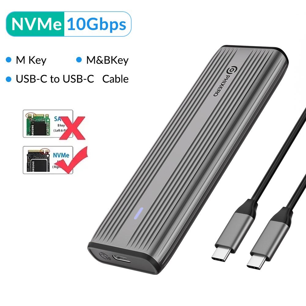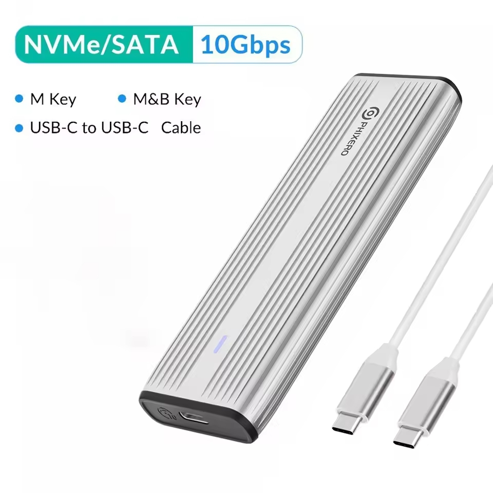 Phixero SSD NVMe M.2 Vỏ kép Portocol NVMe sang USB NGFF SATA Vỏ ngoài USB 3.2 Loại C 10Gbps HD Hộp lưu trữ