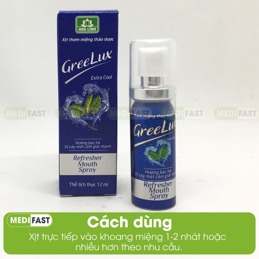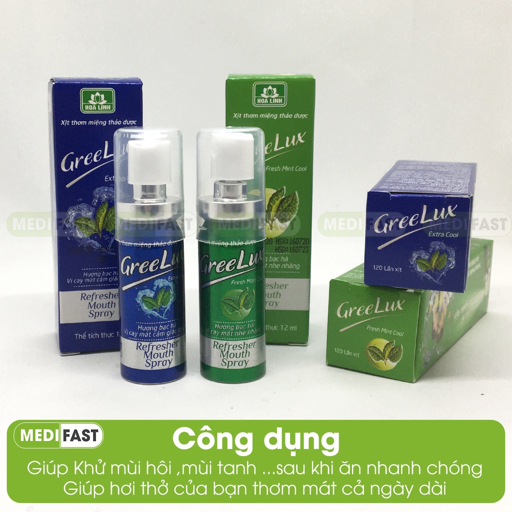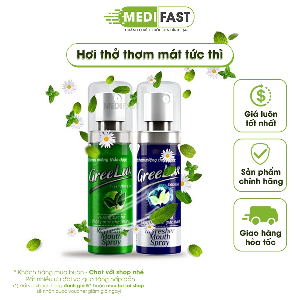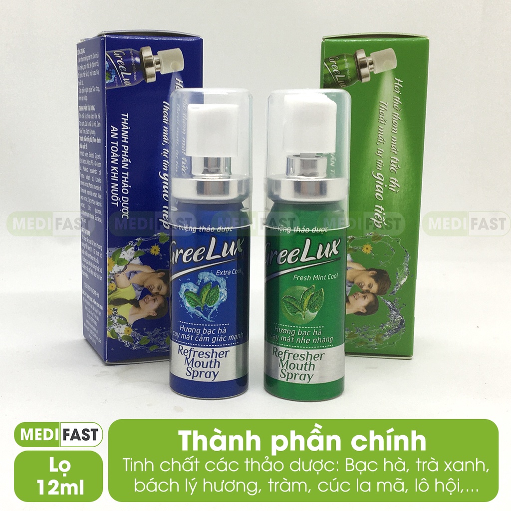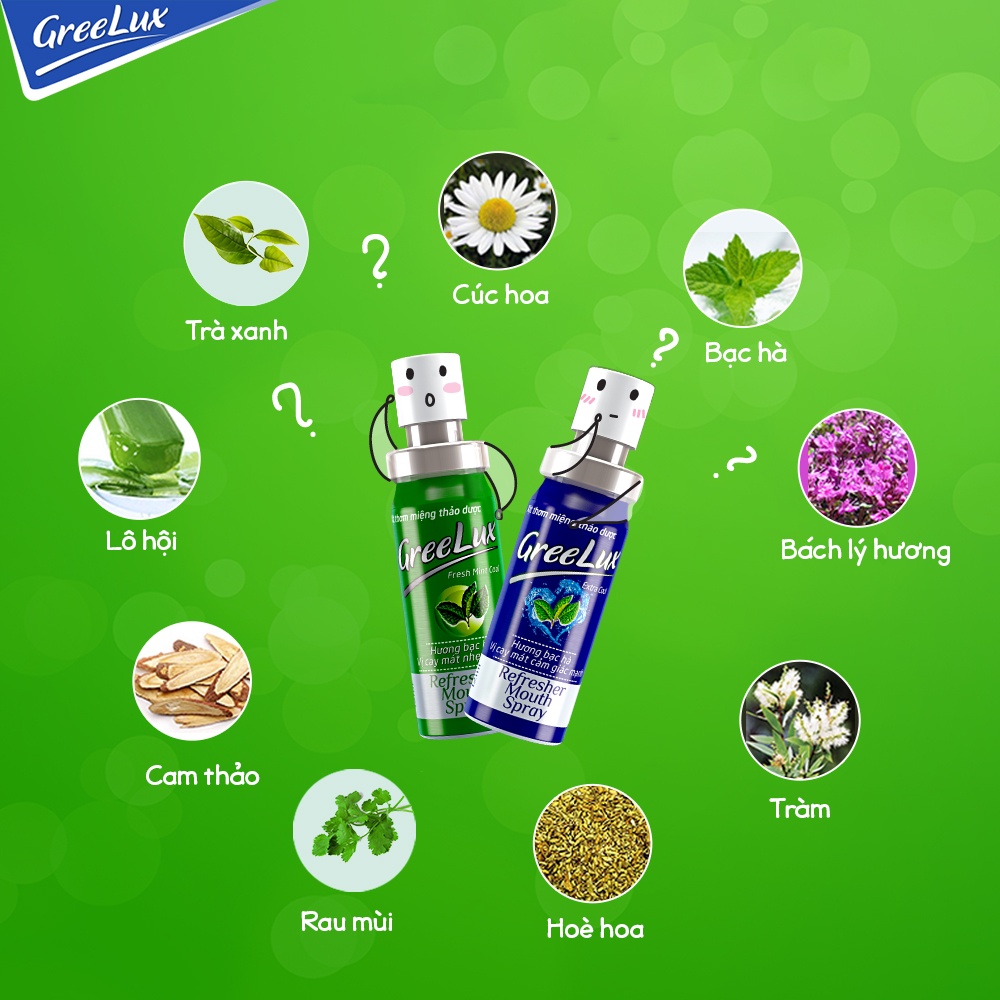 Xịt thơm miệng Greelux Thảo Dược chai 12ml hương bạc hà khử mùi hôi miệng - nước xịt thơm miệng Gree Lux