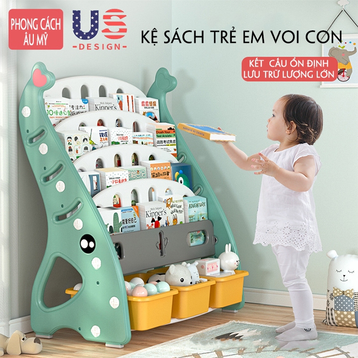 KỆ SÁCH TRẺ EM HÌNH CON VOI BABY THE SUN, CHẤT LIỆU NHỰA CAO CẤP NHIỀU TẦNG ĐỂ KỆ SÁCH