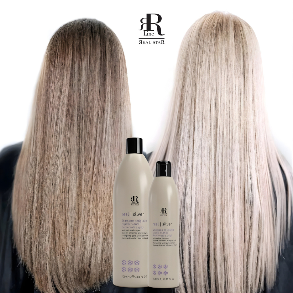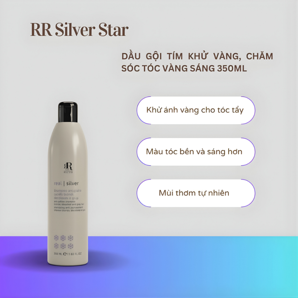 Bộ Gội Hấp Tím Khử Vàng RR Real Star Silver 350ml/1000ml – Bù Ánh Sắc Tím, Khử Ánh Vàng Trên Tóc.