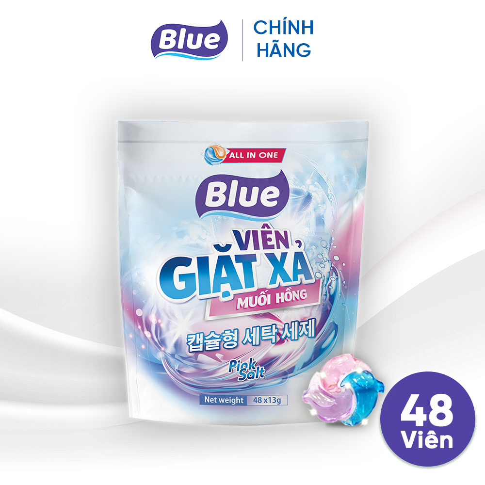 Túi Viên Giặt Xả Blue Muối Hồng Túi 48 viên tiện lợi - 1 Viên được 7kg Quần áo