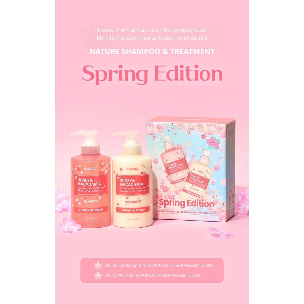 Set Gội Xả Honey & Macadamia KUNDAL - Cân Bằng Tự Nhiên 500ml*2ea (Phiên Bản Spring Edition) 🌸