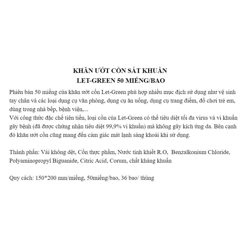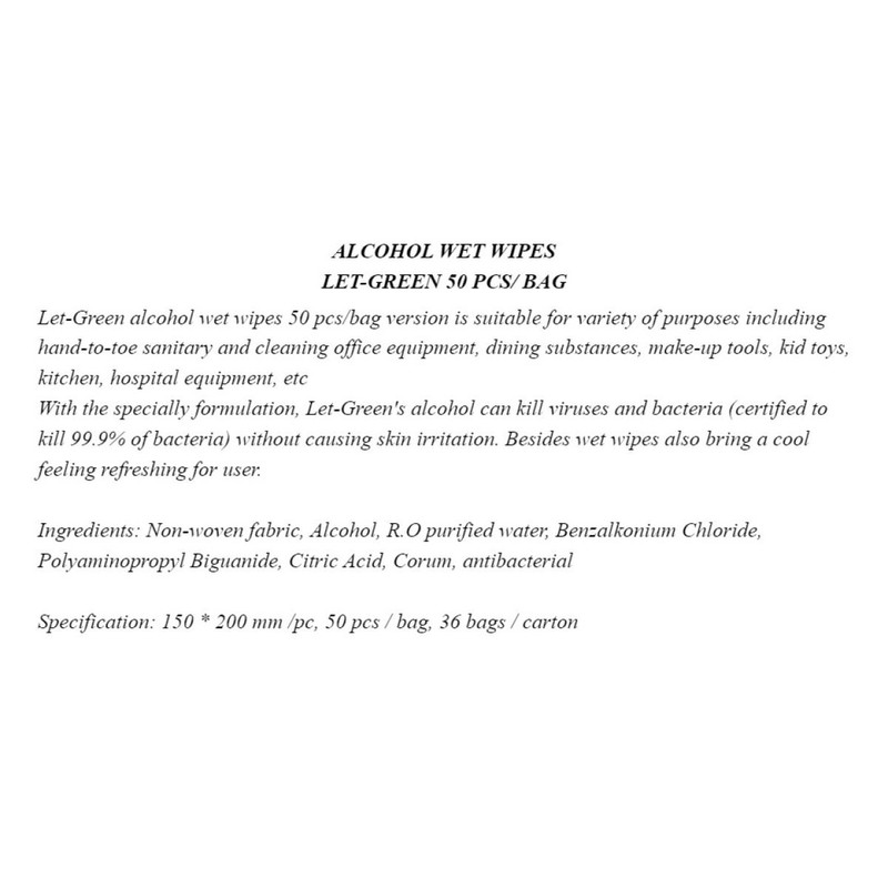 [50 TỜ] LET-GREEN ALCOHOL WET WIPES 50PCS KHĂN ƯỚT CỒN LET-GREEN 50 MIẾNG