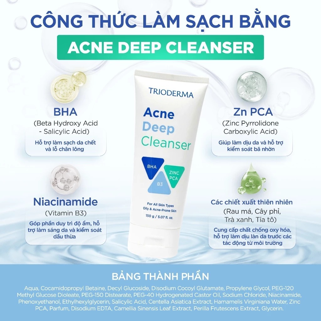 Sữa Rửa Mặt Trioderma Acne Deep Cleanser 150g