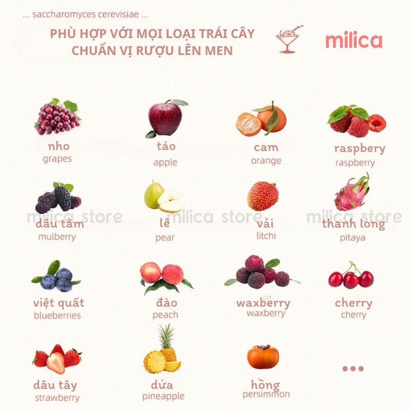 [MUA 3 TẶNG 2] Men rượu hoa quả Angel, men ủ rượu trái cây, ủ rượu nho, cam, táo, dâu, thơm,...1 gói ủ 15kg trái cây