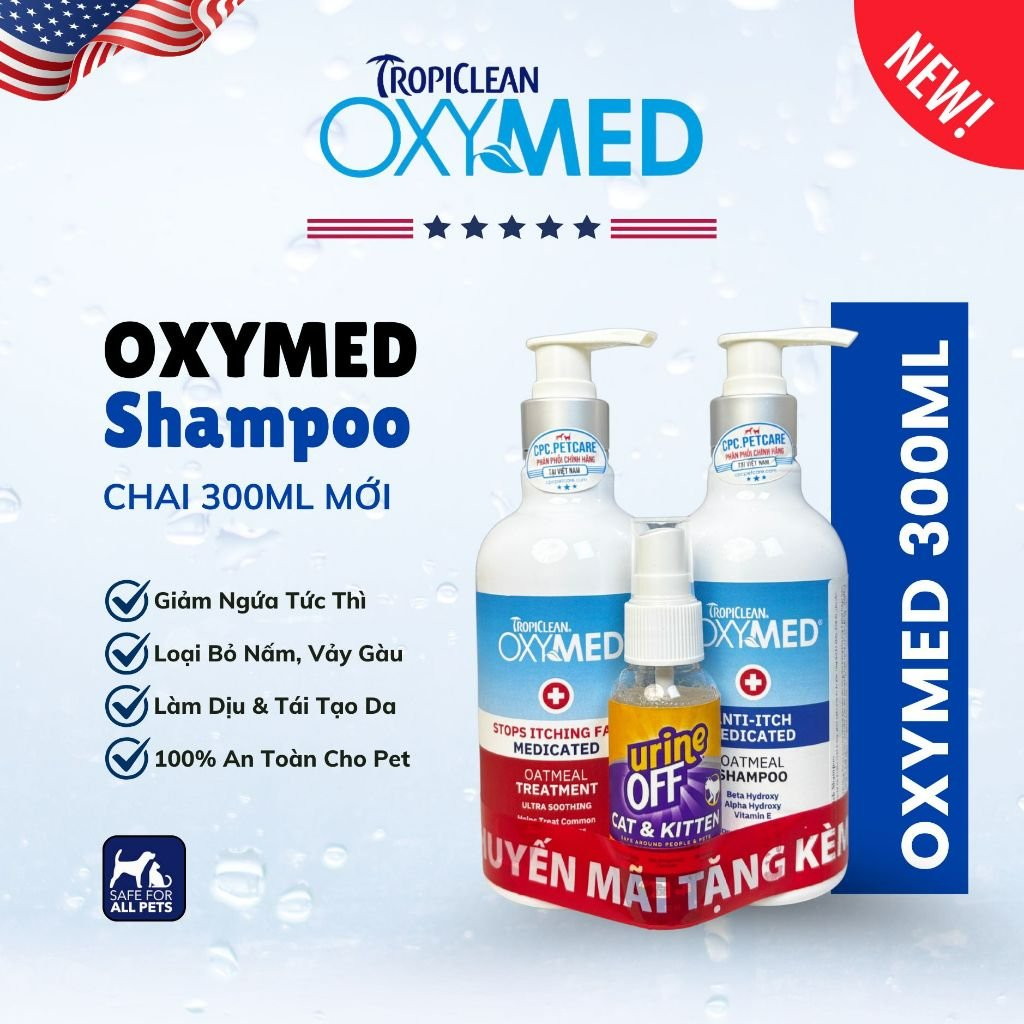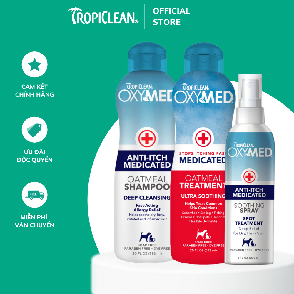 Sữa tắm ngừa nấm da, viêm da cho chó mèo Tropiclean Oxymed 592ml