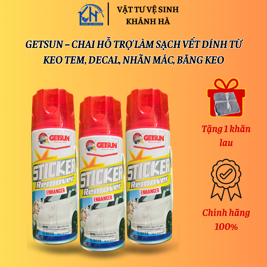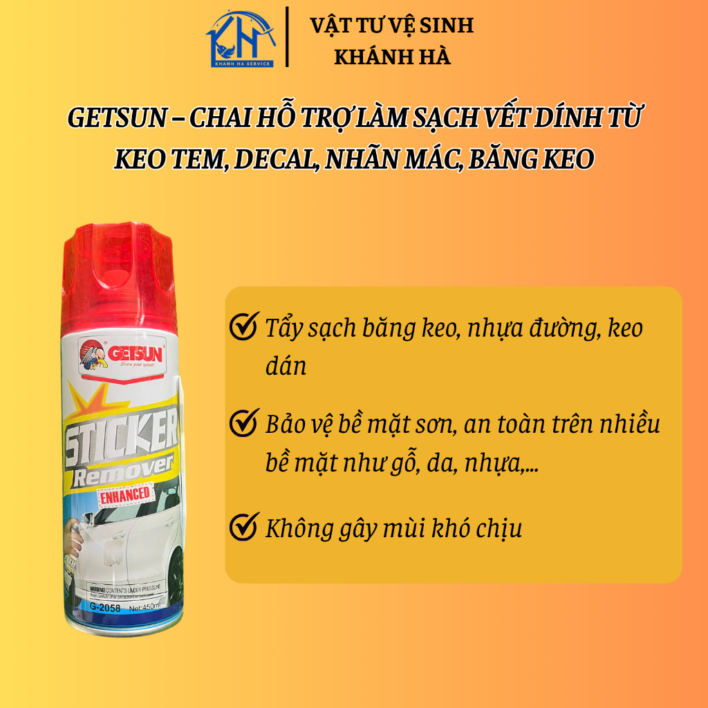 Dung dịch làm sạch bề mặt keo, decal, tem nhãn GETSUN 450ml – Dạng xịt tiện dụng