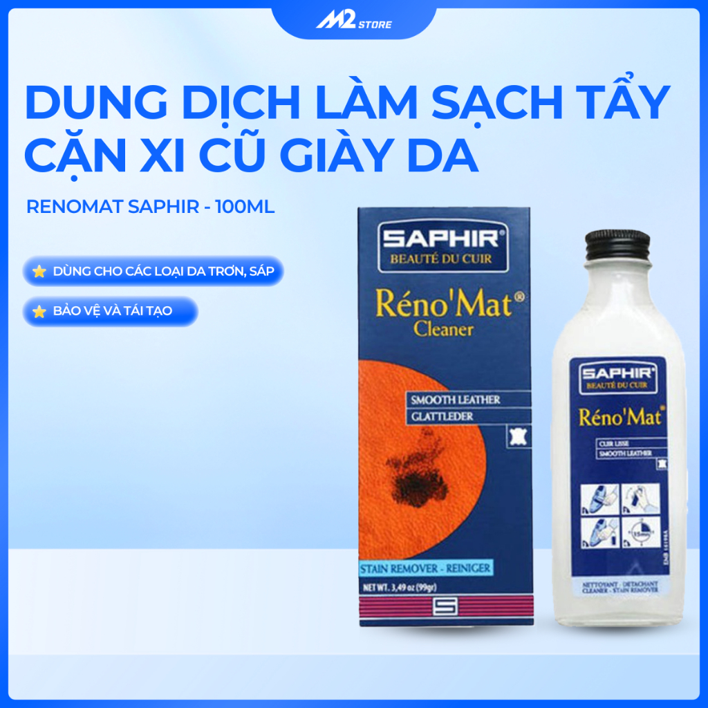 Dung dịch làm sạch, tẩy cặn xi cũ giày da Renomat Saphir 100ml (XDG05)