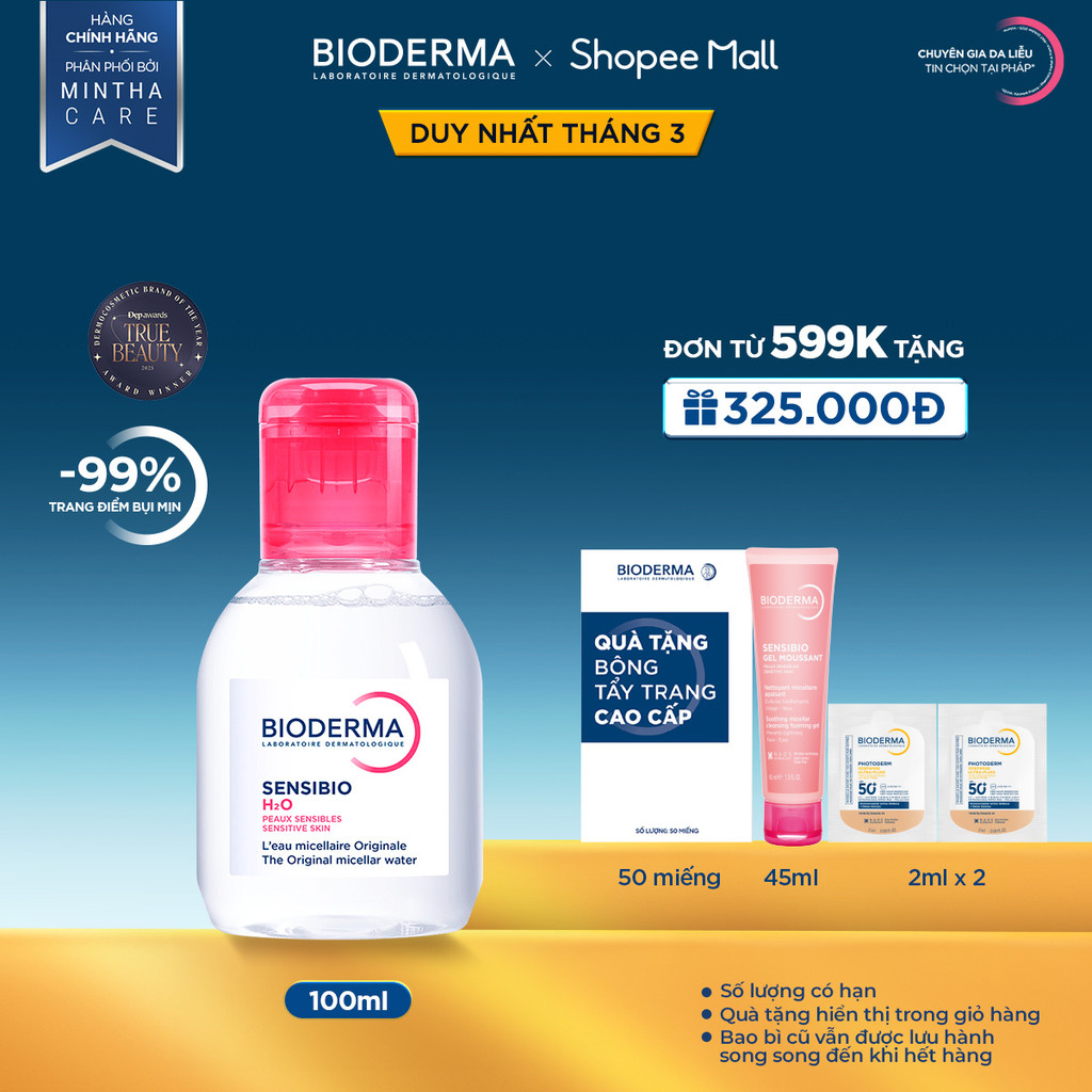 Dung dịch làm sạch và tẩy trang công nghệ Micellar Bioderma Sensibio H2O - 100ml