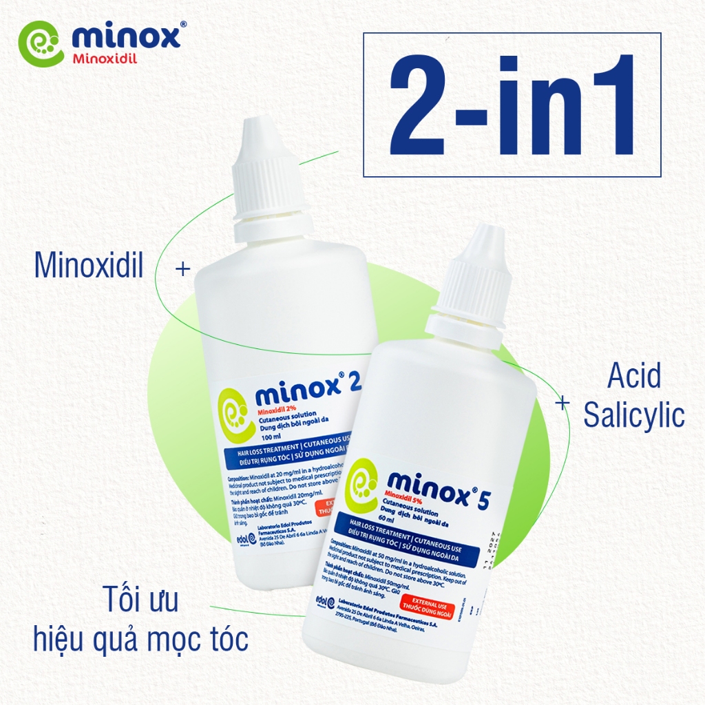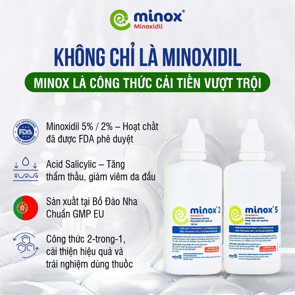Dung dịch mọc tóc Minox 2 20mg Edol (minoxidil 2%) giúp hỗ trợ mọc tóc, giảm rụng tóc - Chai 100ml