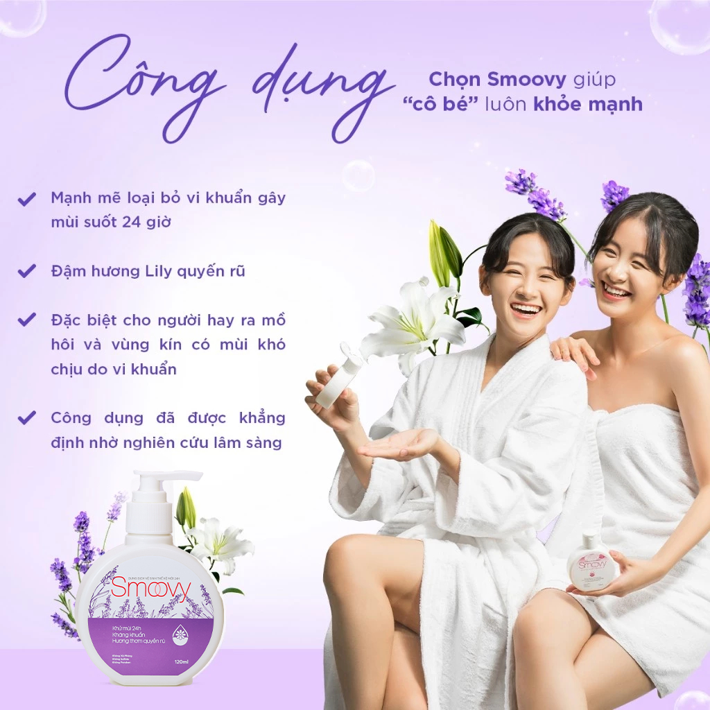 (Che tên) Dung dịch vệ sinh phụ nữ Smoovy 24H - Giảm mùi và hạn chế vi khuẩn, hương thơm quyến rũ suốt 24H - 120ML