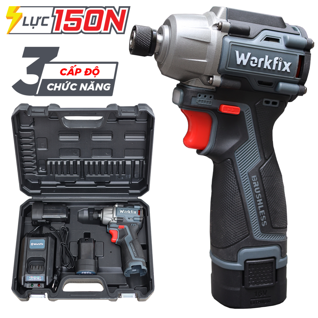 Máy Bắn Vít Pin Workfix WF-SD150N, Lực Siết 150Nm, 3 Tốc Độ, Không Chổi Than, Pin 4Cell Chính Hãng