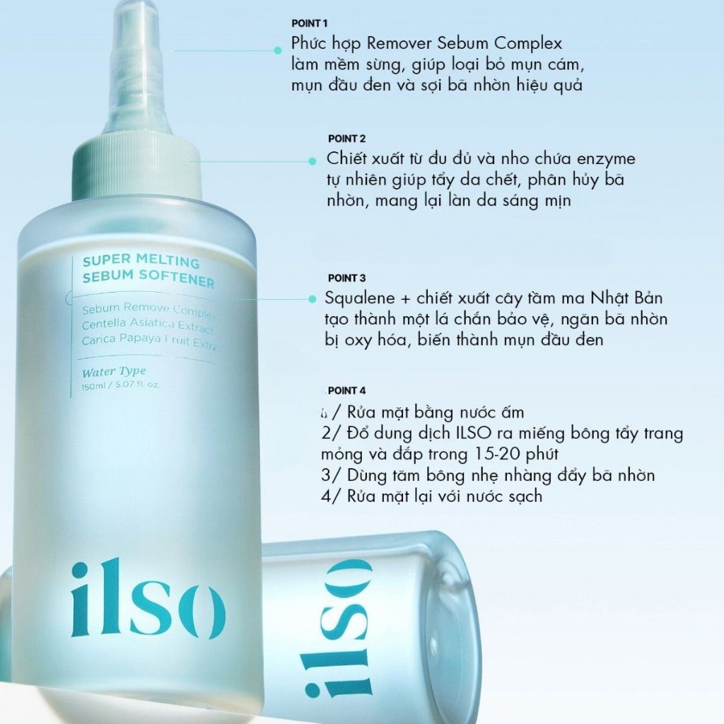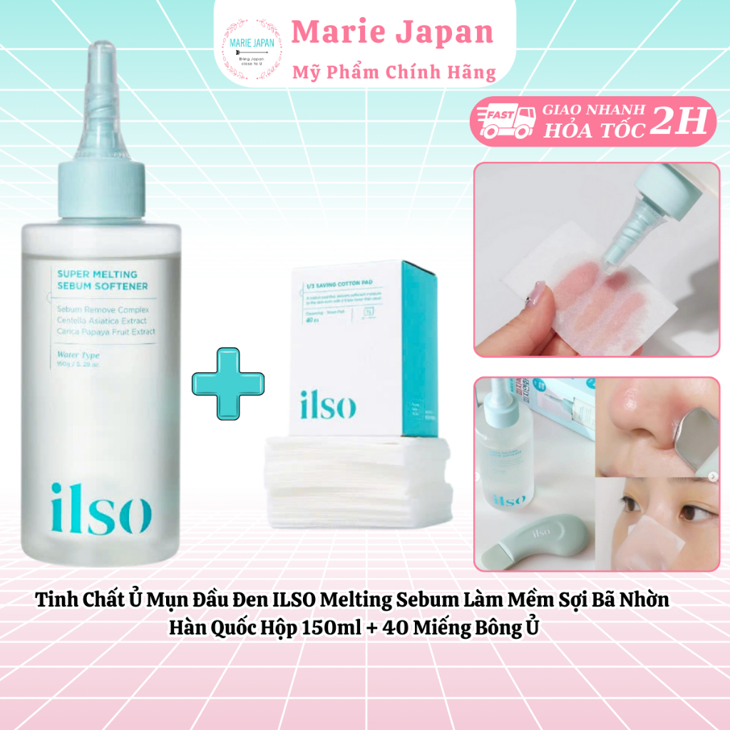 Tinh Chất Ủ Mụn Đầu Đen ILSO Melting Sebum Làm Mềm Sợi Bã Nhờn Hàn Quốc Hộp 150ml + 40 Miếng Bông Ủ