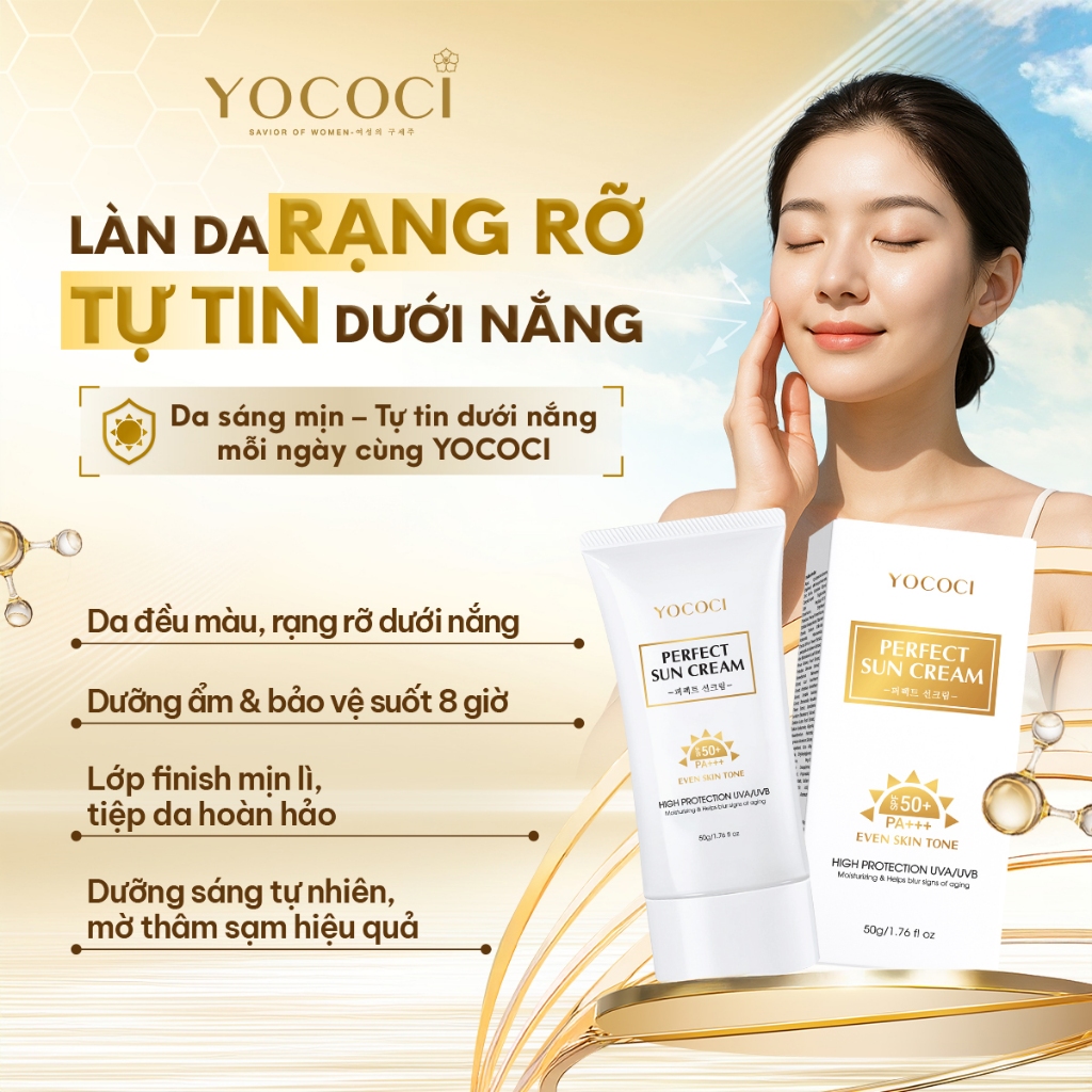 Kem Chống Nắng YOCOCI Chống Tia UVA/UVB, Nâng Tone, Chống Trôi Perfect Sun Cream SPF50+ PA+++ 50g